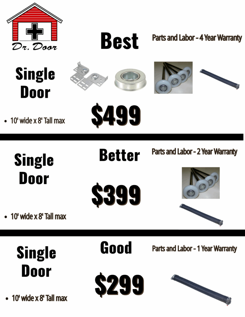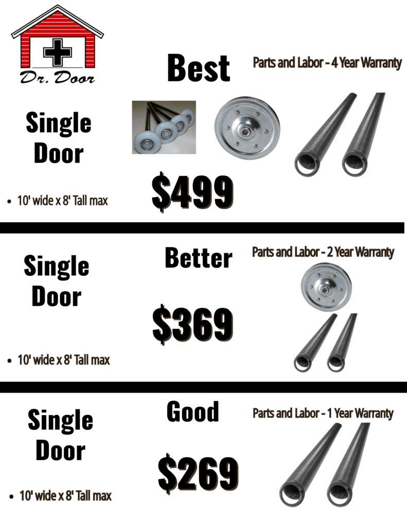 We also offer reliable garage door spring services that you can book right from your computer! To learn more about our spring service pricing, take a look at our examples below: