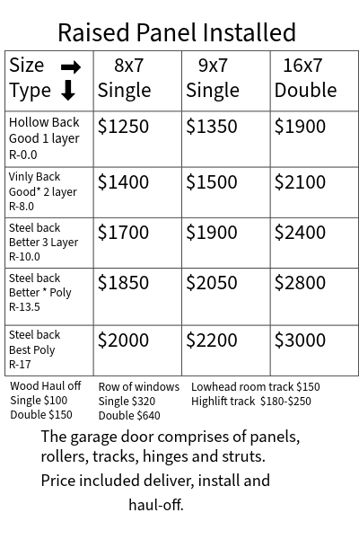 We strive to make our garage door pricing practices as transparent as possible. To help you understand our garage door pricing, explore the diagram below: